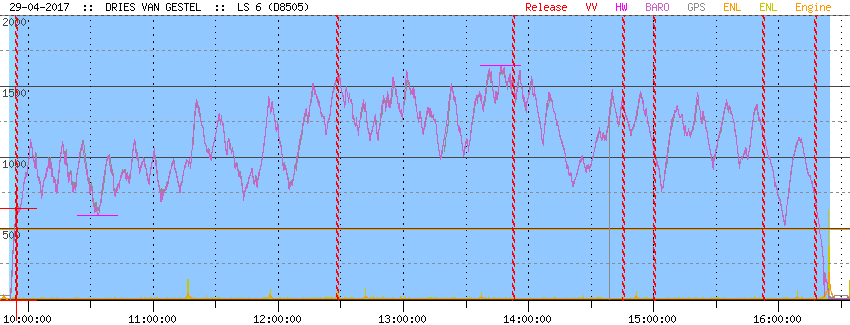 Alternatief stond in de agenda een autorit naar Duitsland. Waarom dan niet proberen hetzelfde doel te bereiken met de zwever. "Elz", 240km uit, niet opgegeven in de logger maar wel in mijn hoofd. Eigenlijk wat te laat op het veld, maar uiteindelijk nog net voor heel de kempen onder de spread out zat kunnen vertrekken en eerst stuk ging vlot. Dan eens bij Beek toch op een of andere manier wat op de handrem en ook wel wat beginnen zwalpen. Volgende keer toch maar iets op gegeven op dit te voorkomen? Uiteindelijk 164km uit terug gedraaid en achteraf gezien toch beter nog wat doorgevlogen (en wat meer boven het relief). Terug eens bij Weert zat heel de kempen dicht, maar met wat lange steken was er toch nog thermiek te vinden. Eindelijk nog eens een iets of wat XC vlucht in belgie, amai dat was lang geleden. |