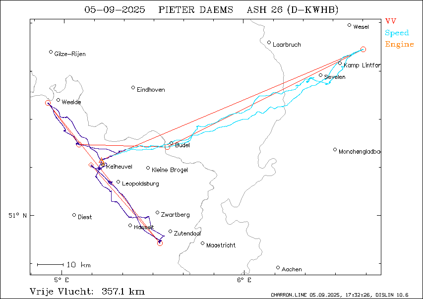 pos.: 51°13.911'N 5°20.817'E = 57° 9.9 km van vertrek