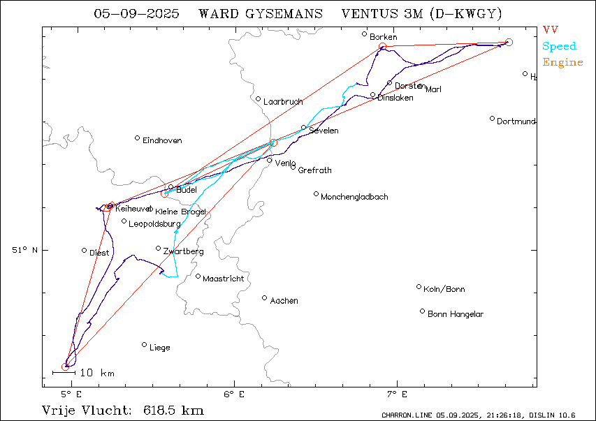 Vrije vlucht : 618.5 km