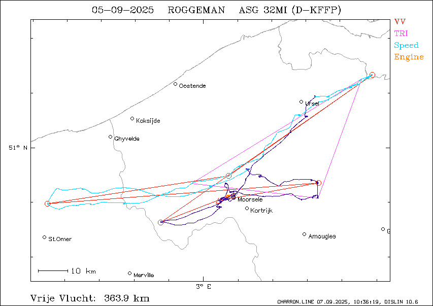 pos.: 50°56.342'N 3°13.382'E = 28° 10.7 km van vertrek