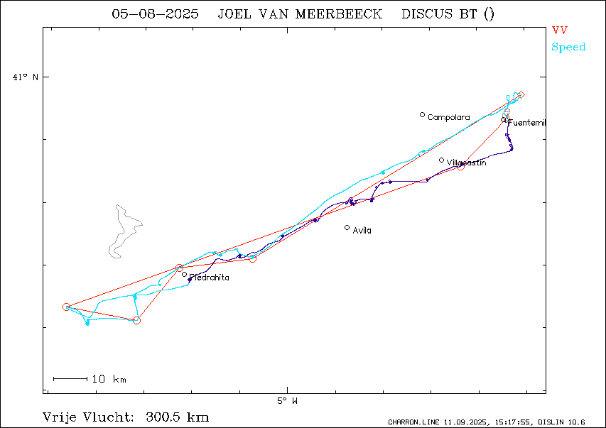 pos.: 40°27.256'N 5°20.722'W = 243° 105.3 km van vertrek