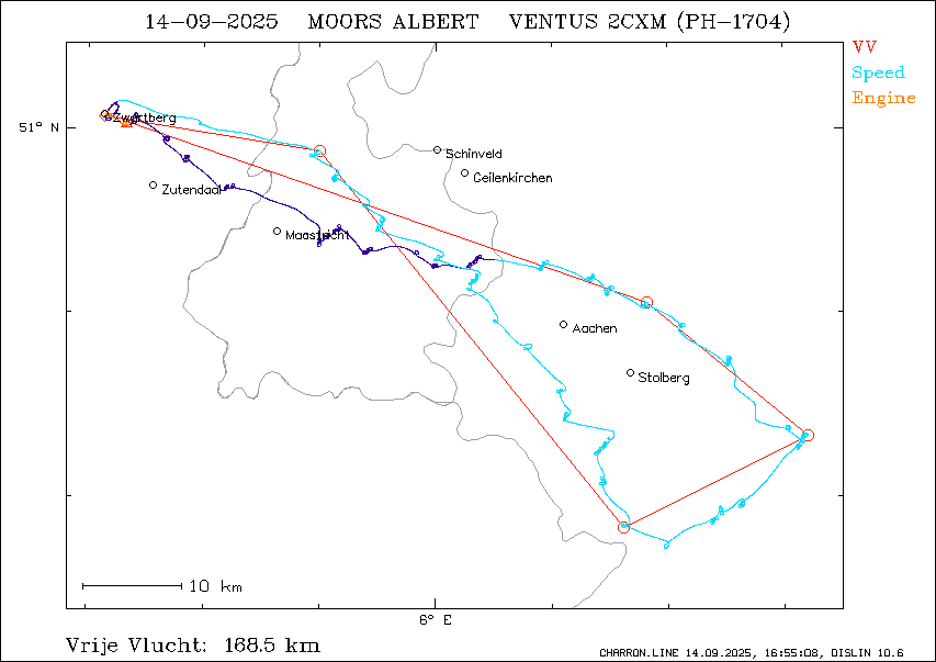 Start : 51°00.445'N 5°33.283'E @ 10:36:37 UTC, 598 m