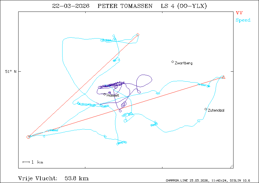 Vrije vlucht : 53.8 km