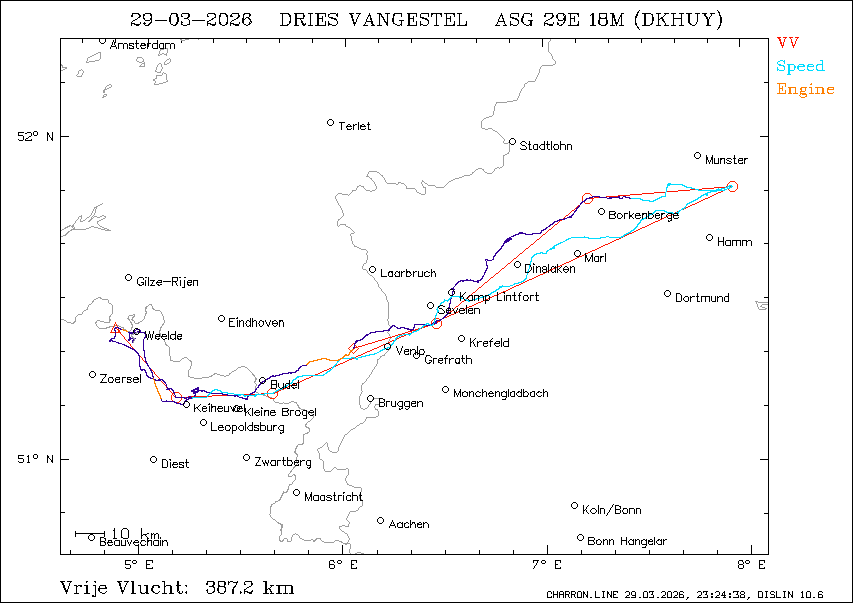 Vrije vlucht : 387.2 km