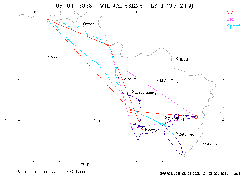 Vrije vlucht : 187.0 km