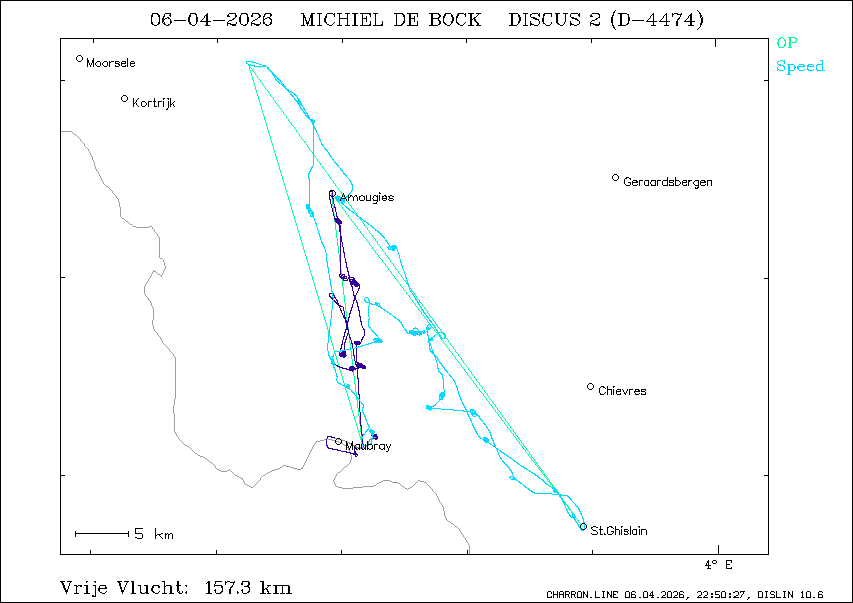 Vrije vlucht : 157.3 km