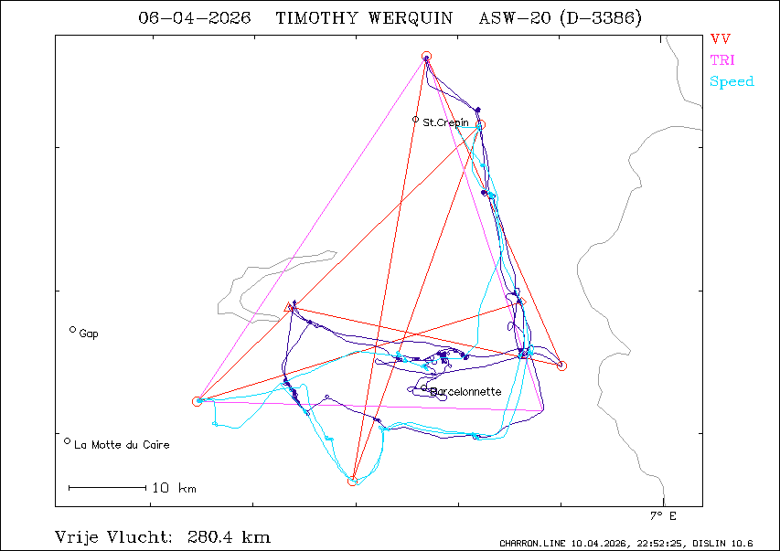 Vrije vlucht : 280.4 km