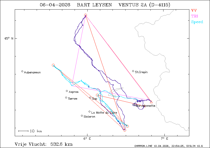 pos.: 44°33.614'N 6°01.560'E = 293° 50.6 km van vertrek
