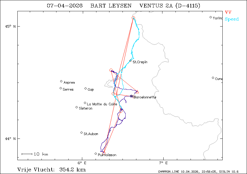pos.: 44°16.973'N 6°28.890'E = 222° 15.7 km van vertrek