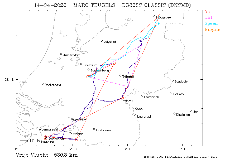 Vrije vlucht : 530.3 km